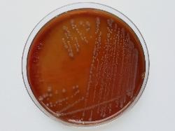 Moraxella cuniculi colonies on sheep blood agar