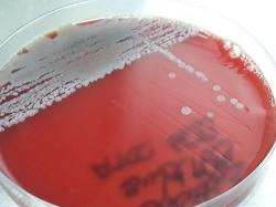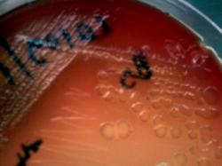 Bacillus subtilis - sticky, translucent colonies on Sheep Blood Agar