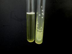 Bacillus subtilis - pellicle in liquid medium and round, opaque colonies on solid medium