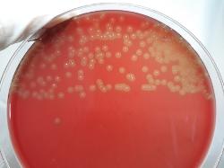 Gemella haemolysans, beta-haemolytic colonies after 72h incubation on 5% sheep blood agar