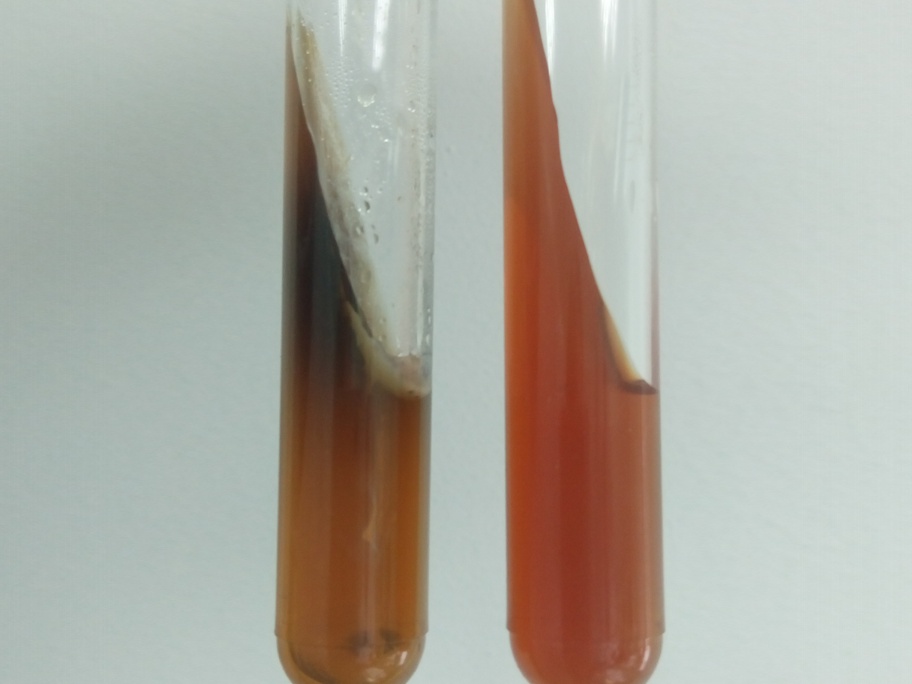 S. epidermidis slime production test (positive - right, negative - left)