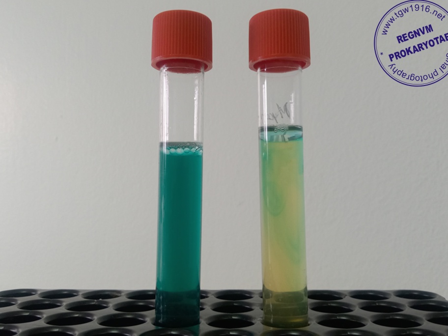 Methylene blue decomposition test negative (left) and positive (right)