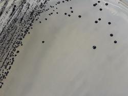 Staphylococcus forms gray/black shiny, convex colonies, 1-5 mm in diameter, with a